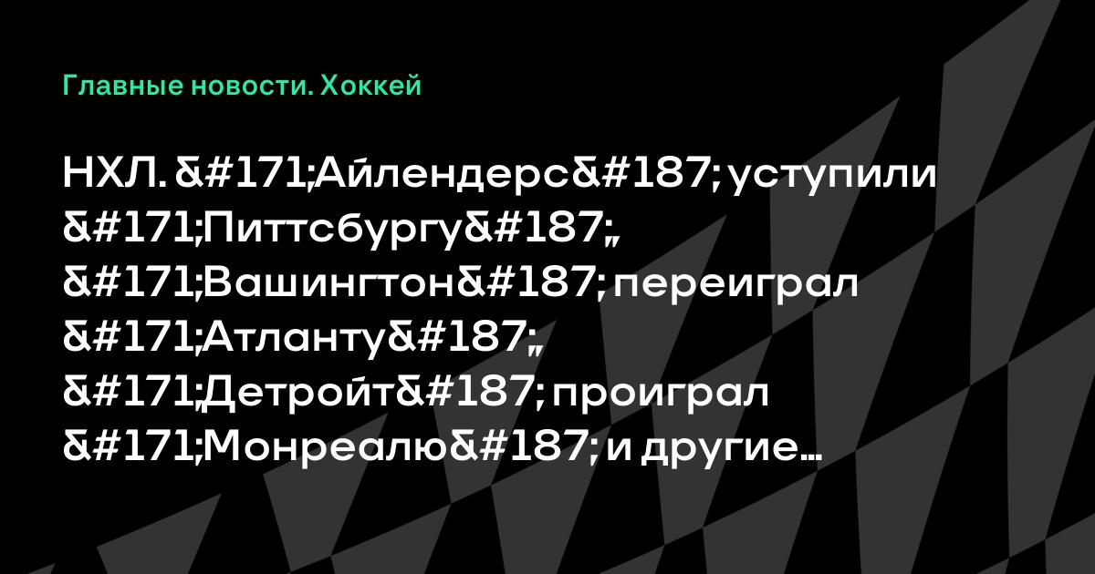 НХЛ. «Айлендерс» уступили «Питтсбургу», «Вашингтон» переиграл «Атланту», «Детройт» проиграл «Монреалю» и другие результаты