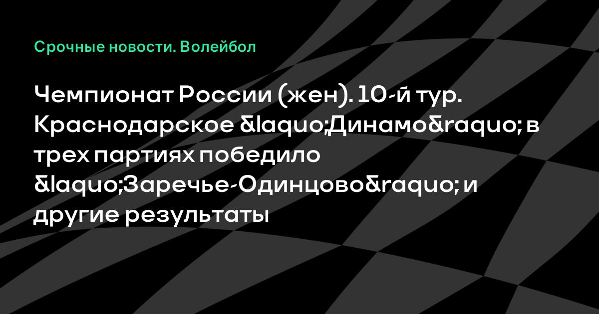 Чемпионат России (жен). 10-й тур. Краснодарское «Динамо» в трех партиях победило «Заречье-Одинцово» и другие результаты