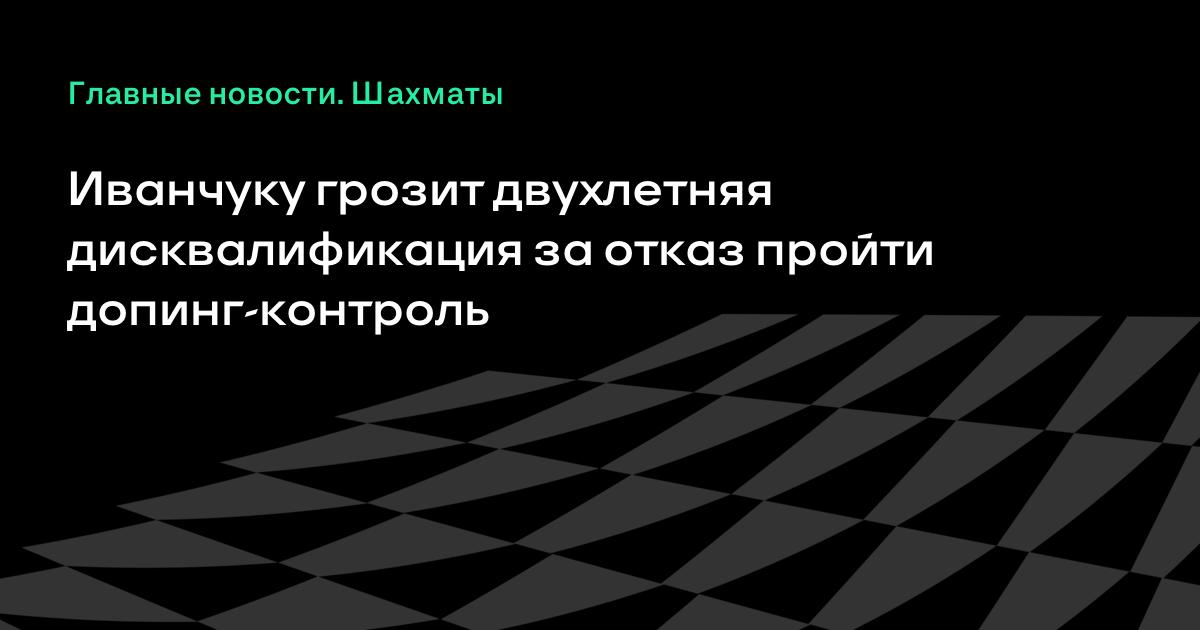 Президент ФИДЕ Кирсан Илюмжинов сообщил, что лидеру мужской сборной Украины Василию Иванчуку грозит двухлетняя дисквалификация за отказ пройти допинг-контроль после заключительного, 11-го тура Всемирной шахматной олимпиады в Дрездене, передает «Спорт-Экспресс».