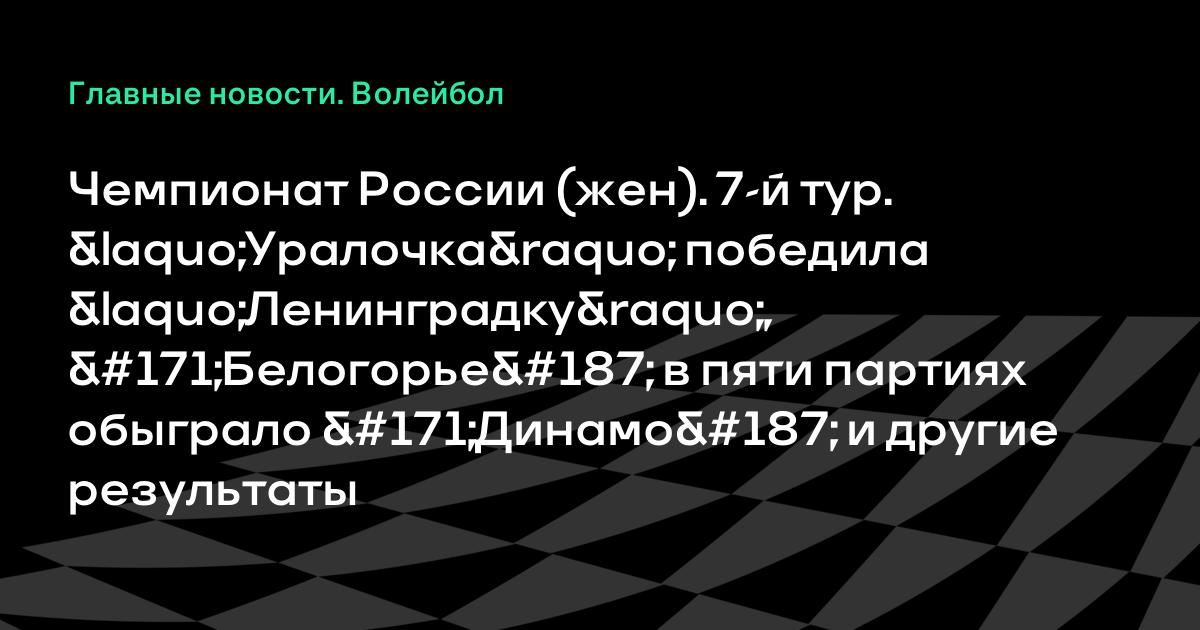 Чемпионат России (жен). 7-й тур. «Уралочка» победила «Ленинградку», «Белогорье» в пяти партиях обыграло «Динамо» и другие результаты