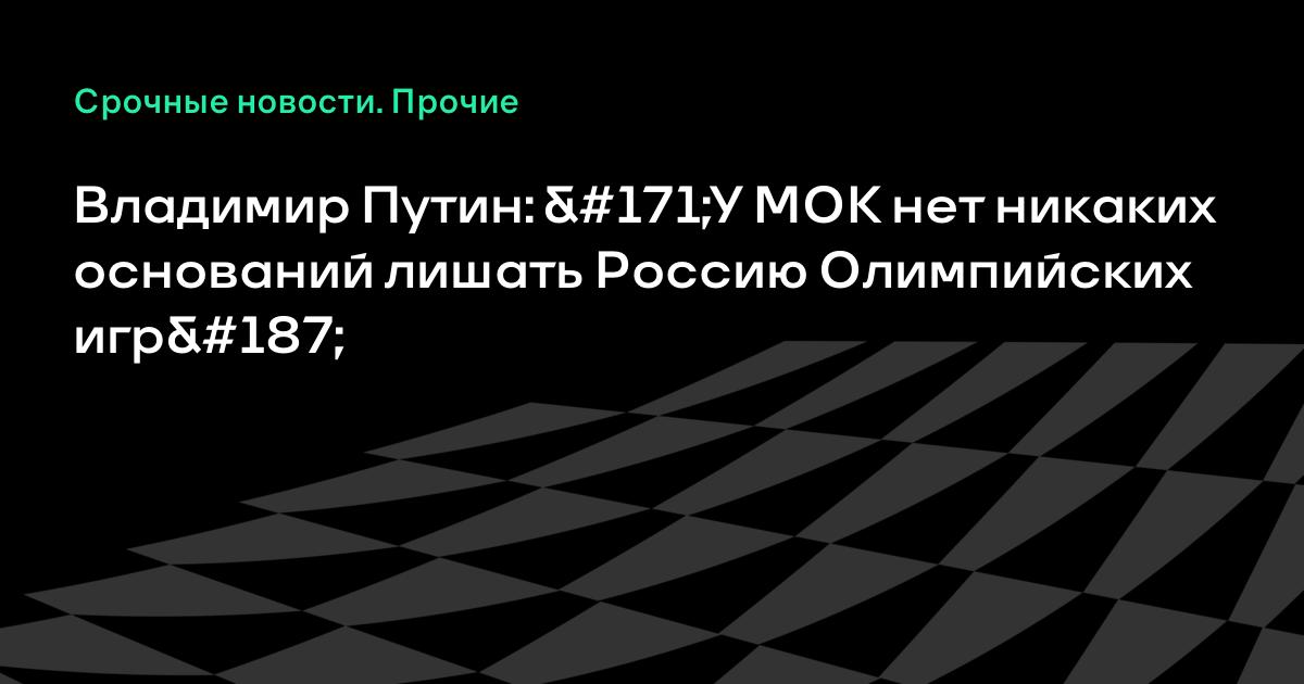 «У МОК нет никаких оснований лишать Россию Олимпийских игр. Надеюсь, что решения МОК и в будущем не будут политизированными», приводит слова Путина Lenta.ru.