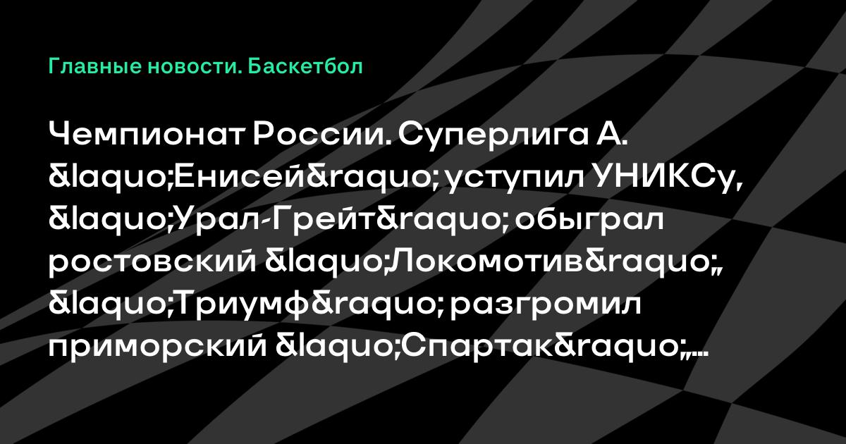 Чемпионат России. Суперлига А. «Енисей» уступил УНИКСу, «Урал-Грейт» обыграл ростовский «Локомотив», «Триумф» разгромил приморский «Спартак», «Динамо» было сильнее питерского «Спартака»