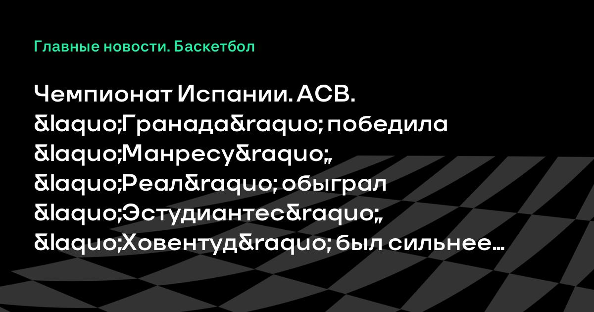 Чемпионат Испании. АСВ. «Гранада» победила «Манресу», «Реал» обыграл «Эстудиантес», «Ховентуд» был сильнее «Гран-Канарии» и другие результаты