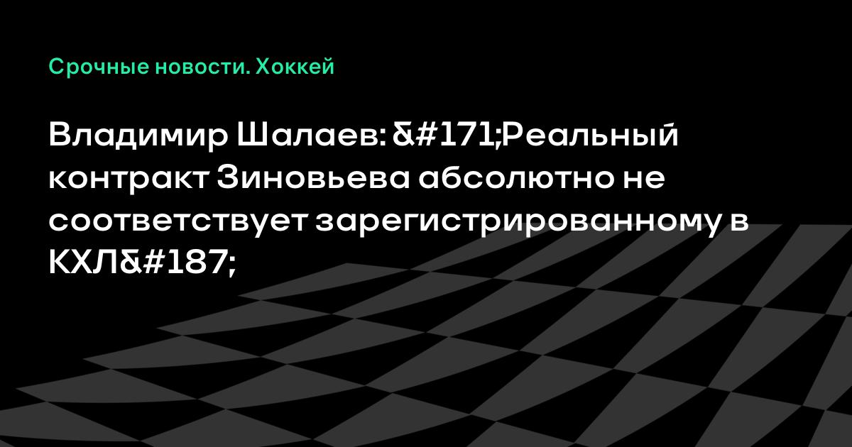 Владимир Шалаев: «Реальный контракт Зиновьева абсолютно не соответствует зарегистрированному в КХЛ»