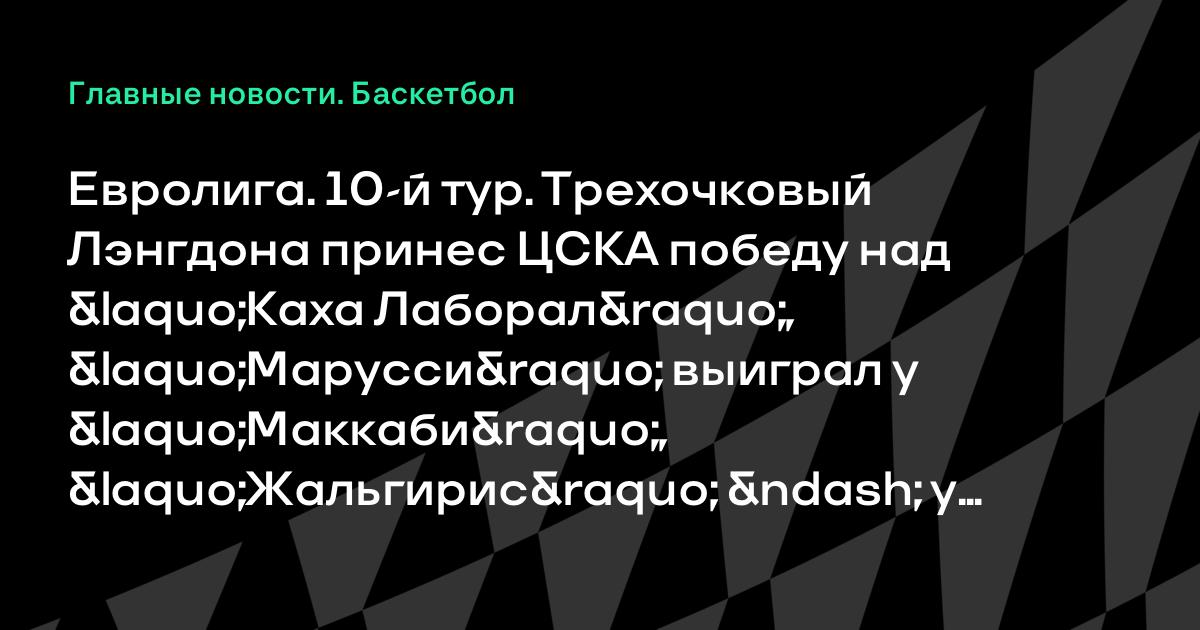 Евролига. 10-й тур. Трехочковый Лэнгдона принес ЦСКА победу над «Каха Лаборал», «Марусси» выиграл у «Маккаби», «Жальгирис» – у «Фенербахче», «Химки» проиграли «Прокому» и другие результаты