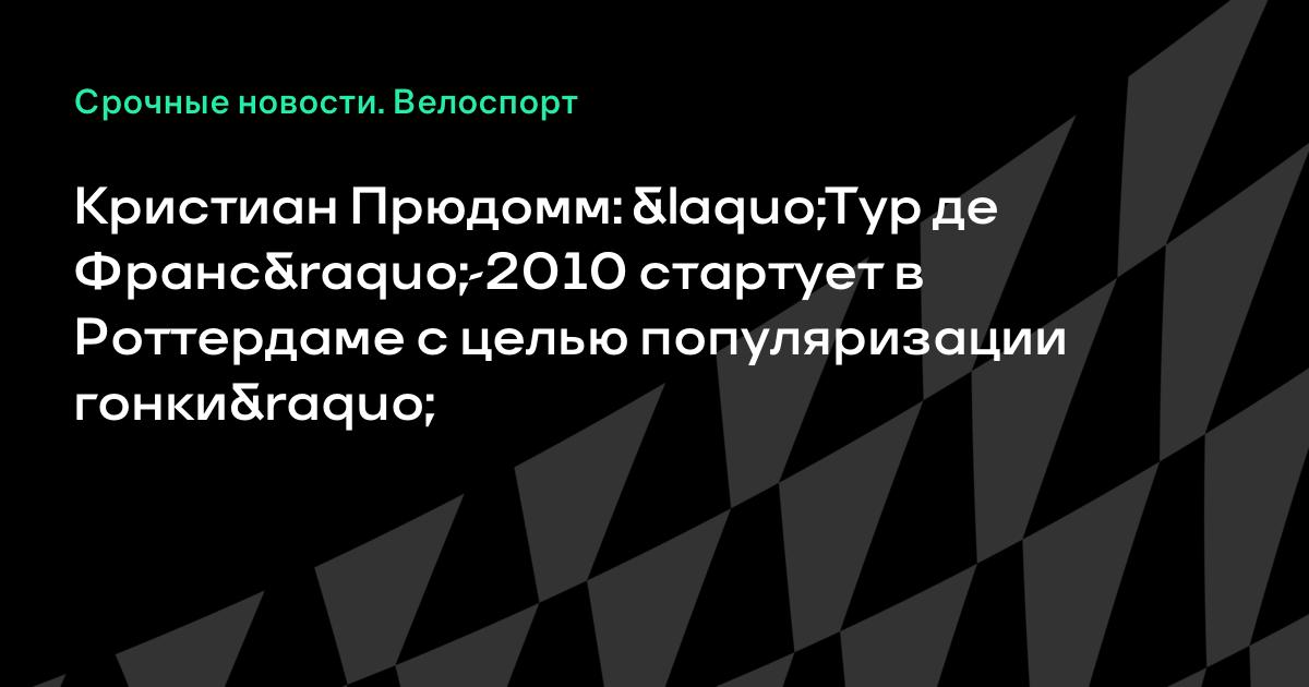 Кристиан Прюдомм: «Тур де Франс»-2010 стартует в Роттердаме с целью популяризации гонки»