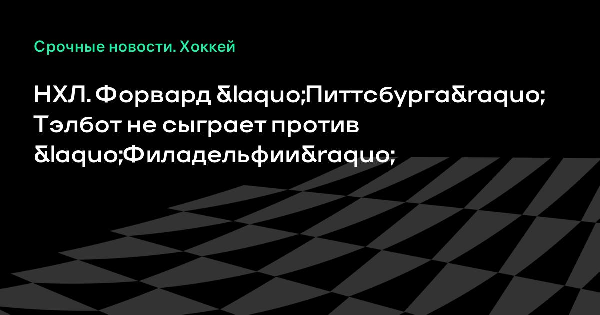 НХЛ. Форвард «Питтсбурга» Тэлбот не сыграет против «Филадельфии»
