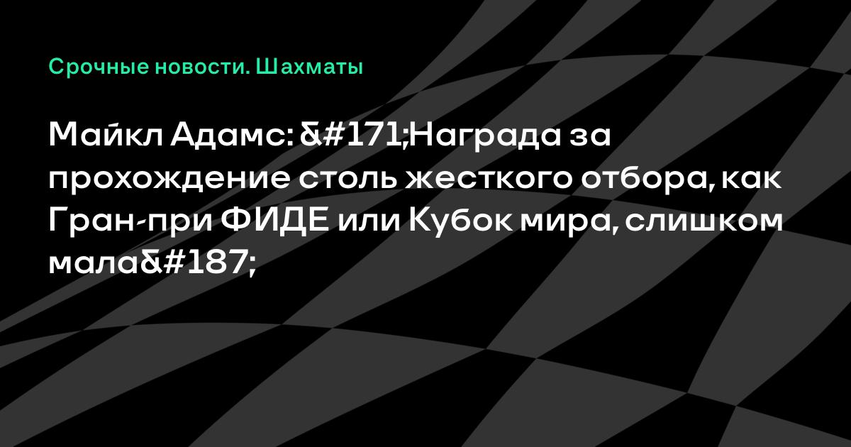 Майкл Адамс: «Награда за прохождение столь жесткого отбора, как Гран-при ФИДЕ или Кубок мира, слишком мала»
