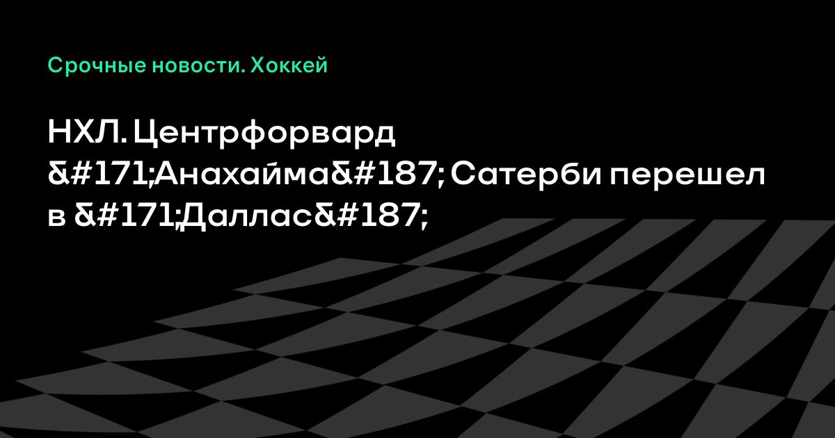 НХЛ. Центрфорвард «Анахайма» Сатерби перешел в «Даллас»