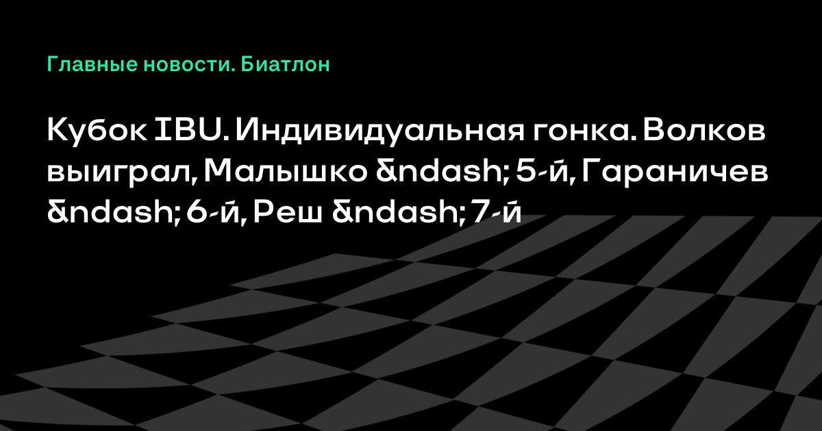 Кубок IBU. Индивидуальная гонка. Волков выиграл, Малышко – 5-й, Гараничев – 6-й, Реш – 7-й