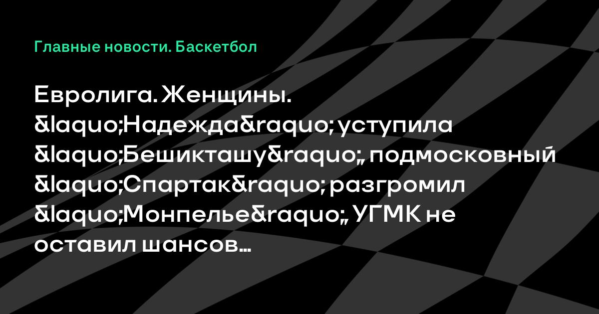 Евролига. Женщины. «Надежда» уступила «Бешикташу», подмосковный «Спартак» разгромил «Монпелье», УГМК не оставил шансов «Валансьену», ЦСКА победил «Венецию» и другие результаты
