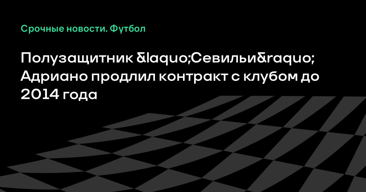 Полузащитник «Севильи» Адриано Коррейя останется в команде до 2014 года. Сегодня футболист продлил действующее соглашение с клубом еще на пять лет. Сумма отступных, прописанная в контракте Адриано, составит 50 миллионов евро, сообщает LEquipe.