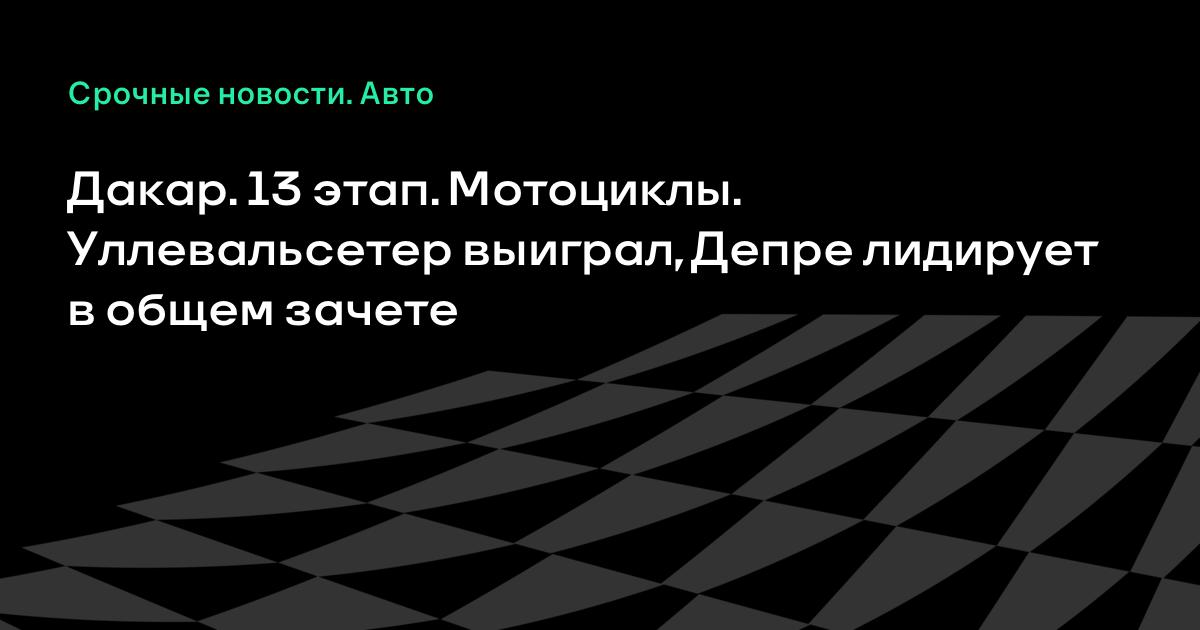 Дакар. 13 этап. Мотоциклы. Уллевальсетер выиграл, Депре лидирует в общем зачете