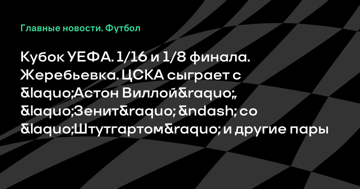 Кубок УЕФА. 1/16 и 1/8 финала. Жеребьевка. ЦСКА сыграет с «Астон Виллой», «Зенит» – со «Штутгартом» и другие пары