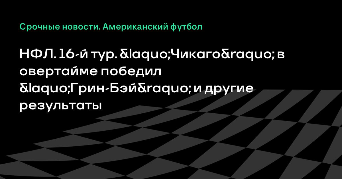 НФЛ. 16-й тур. «Чикаго» в овертайме победил «Грин-Бэй» и другие результаты