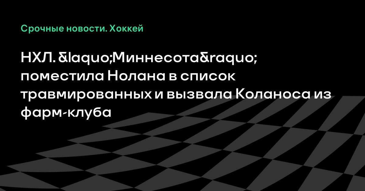 НХЛ. «Миннесота» поместила Нолана в список травмированных и вызвала Коланоса из фарм-клуба
