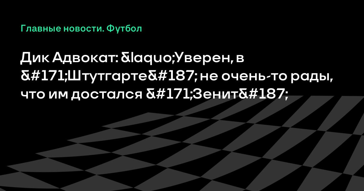 Дик Адвокат: «Уверен, в «Штутгарте» не очень-то рады, что им достался «Зенит»