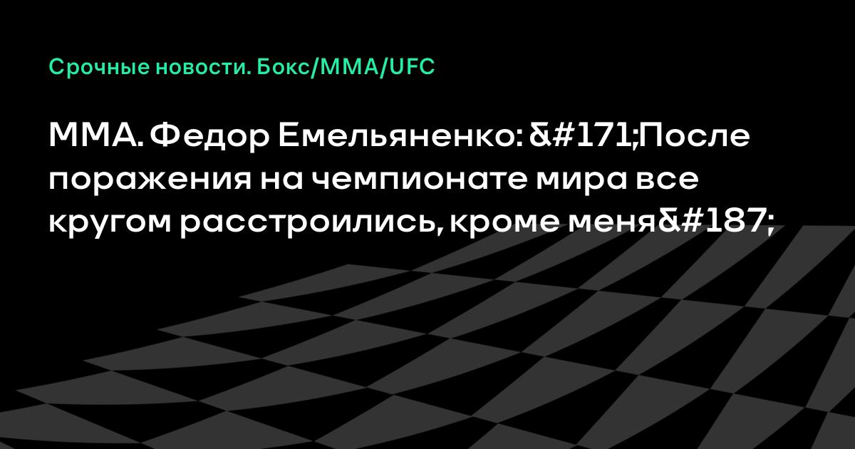 MMA. Федор Емельяненко: «После поражения на чемпионате мира все кругом расстроились, кроме меня»