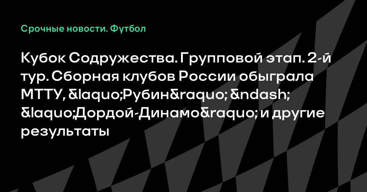 Кубок Содружества. Групповой этап. 2-й тур. Сборная клубов России обыграла МТТУ, «Рубин» – «Дордой-Динамо» и другие результаты