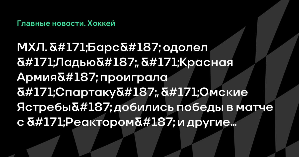 МХЛ. «Барс» одолел «Ладью», «Красная Армия» проиграла «Спартаку», «Омские Ястребы» добились победы в матче с «Реактором» и другие результаты