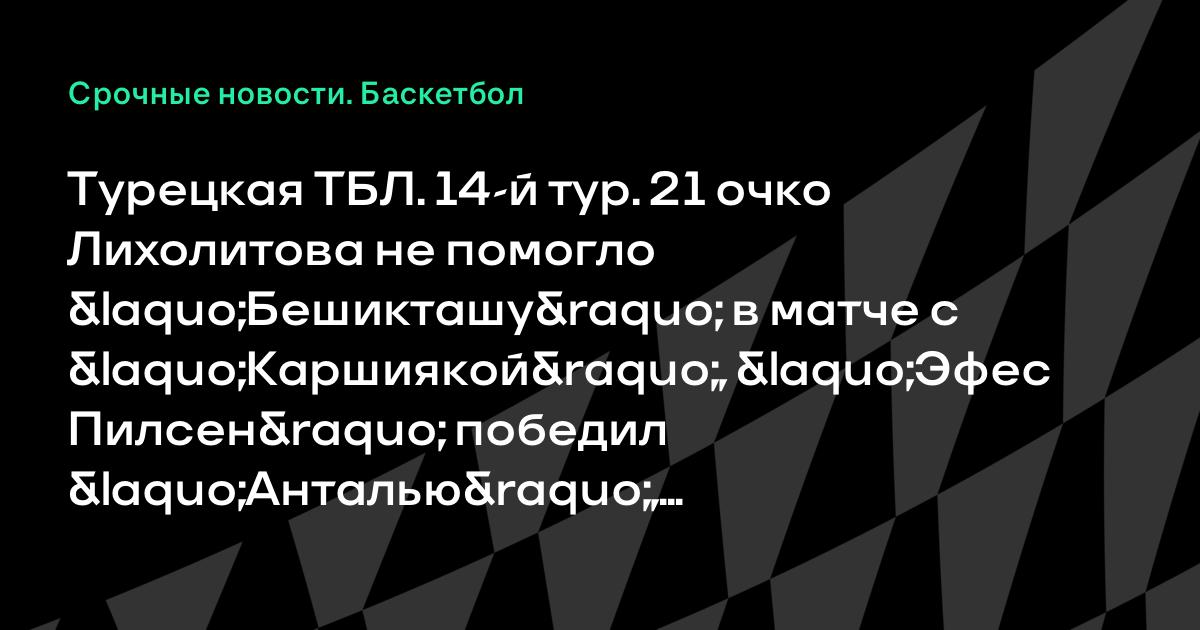Турецкая ТБЛ. 14-й тур. 21 очко Лихолитова не помогло «Бешикташу» в матче с «Каршиякой», «Эфес Пилсен» победил «Анталью», «Эрдемир» уступил в овертайме «Кепезу» и другие результаты