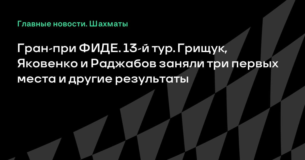 Гран-при ФИДЕ. 13-й тур. Грищук, Яковенко и Раджабов заняли три первых места и другие результаты