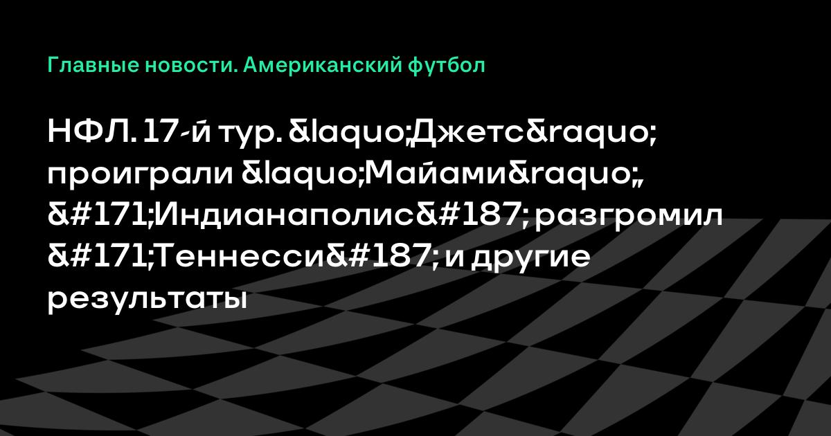 НФЛ. 17-й тур. «Джетс» проиграли «Майами», «Индианаполис» разгромил «Теннесси» и другие результаты
