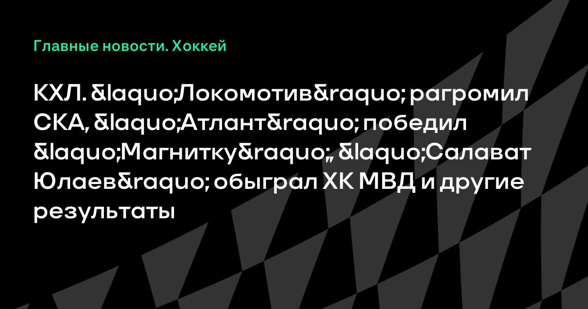 КХЛ. «Локомотив» рагромил СКА, «Атлант» победил «Магнитку», «Салават Юлаев» обыграл ХК МВД и другие результаты