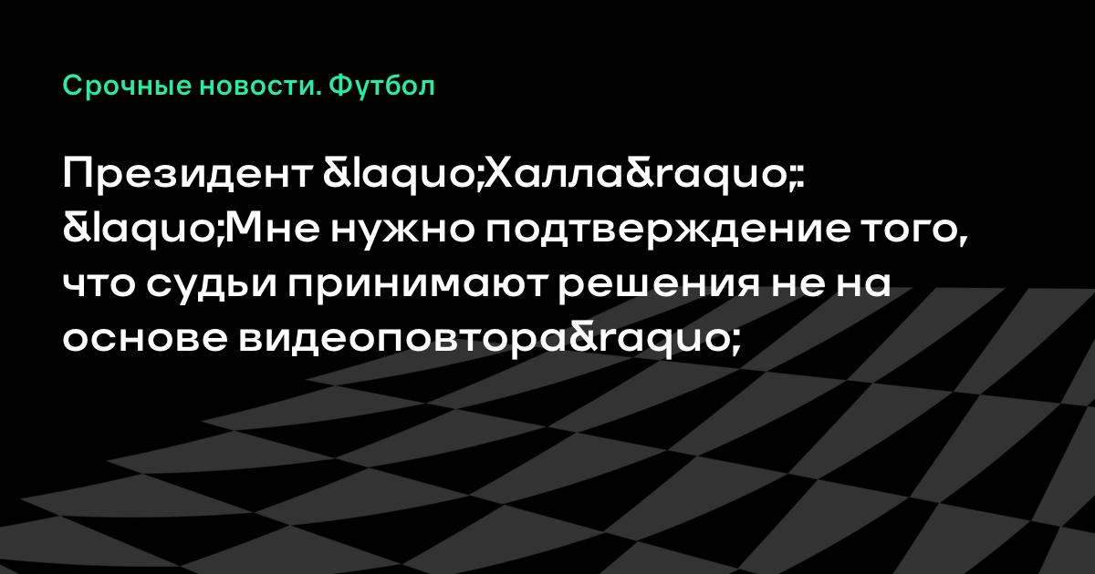 Президент «Халла»: «Мне нужно подтверждение того, что судьи принимают решения не на основе видеоповтора»