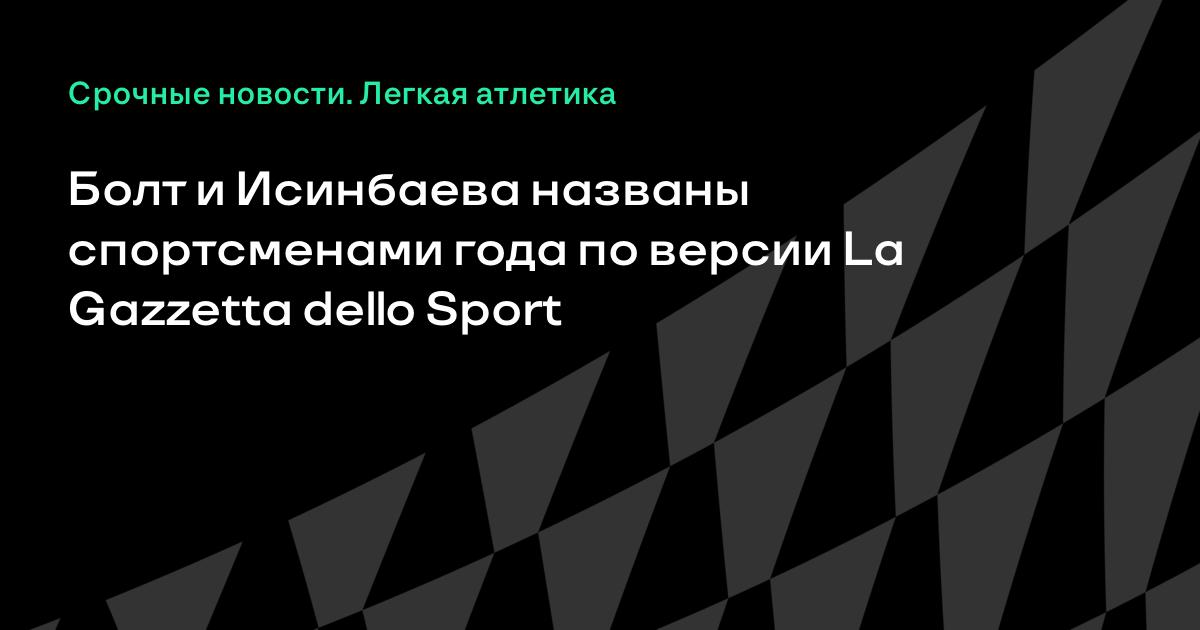 Трехкратный олимпийский чемпион Усэйн Болт и двукратная олимпийская чемпионка Елена Исинбаева названы спортсменами года по версии итальянского издания La Gazzetta dello Sport.