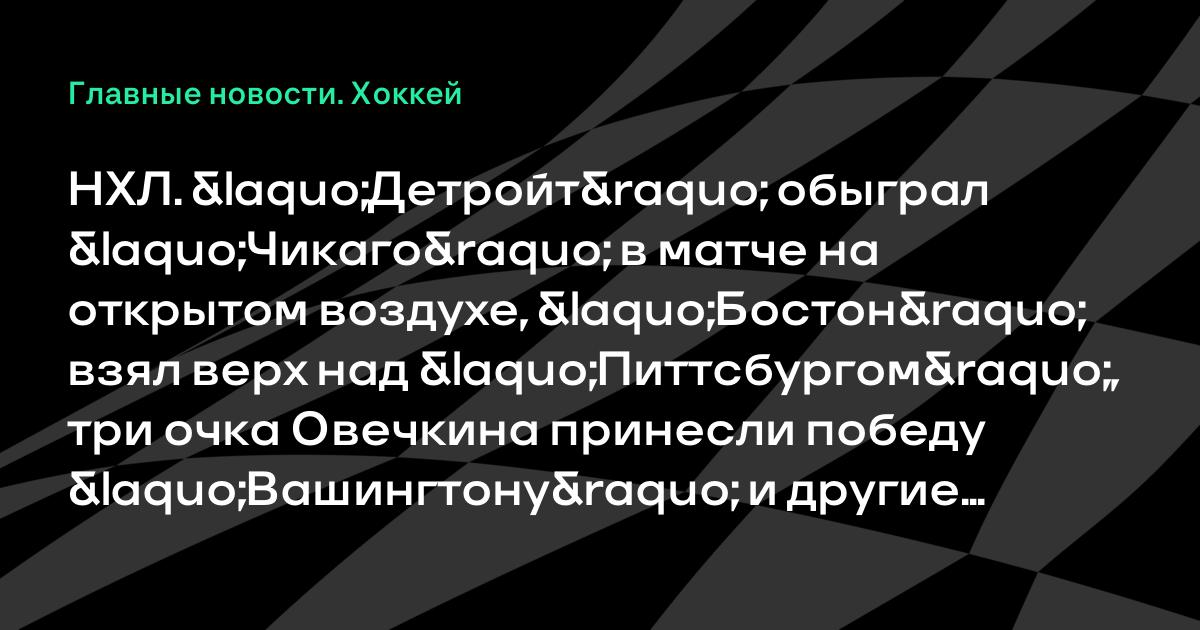 НХЛ. «Детройт» обыграл «Чикаго» в матче на открытом воздухе, «Бостон» взял верх над «Питтсбургом», три очка Овечкина принесли победу «Вашингтону» и другие результаты