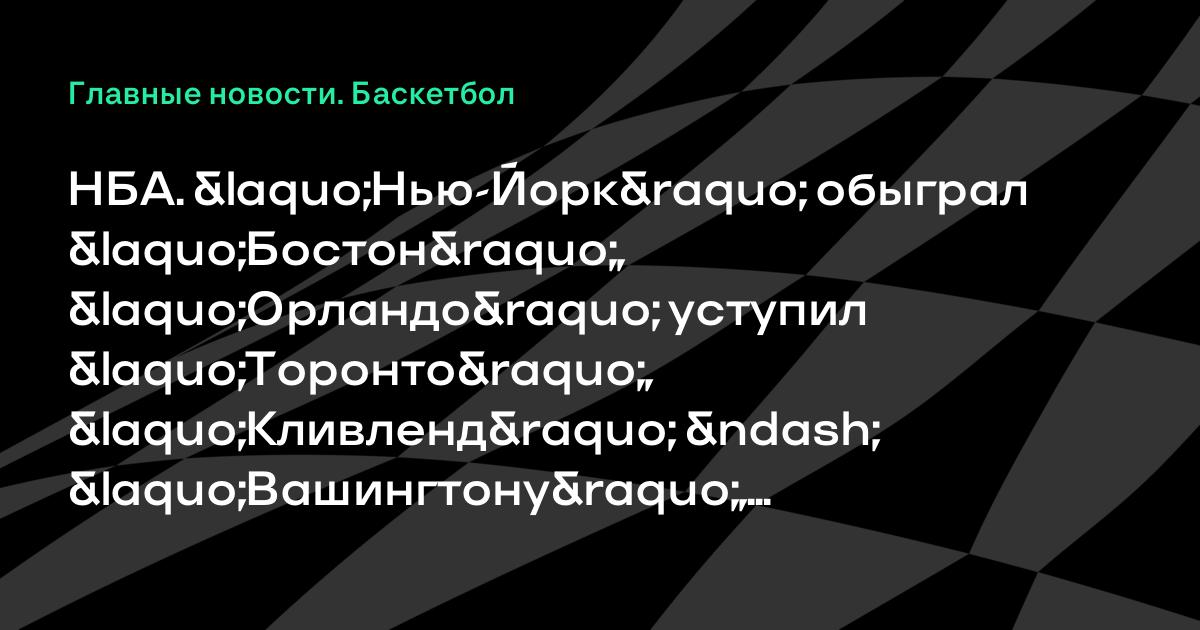 НБА. «Нью-Йорк» обыграл «Бостон», «Орландо» уступил «Торонто», «Кливленд» – «Вашингтону», «Лейкерс» выиграли у «Портленда» и другие результаты