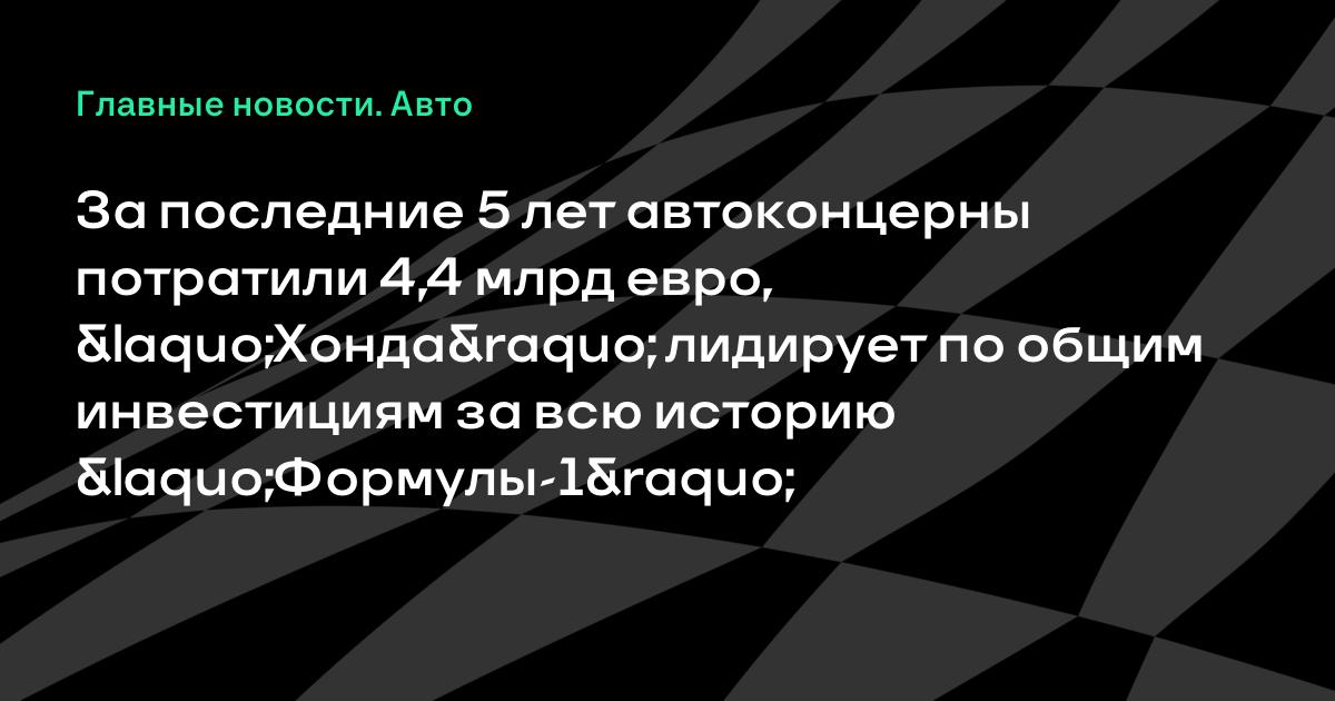 За последние 5 лет автоконцерны потратили 4,4 млрд евро, «Хонда» лидирует по общим инвестициям за всю историю «Формулы-1»