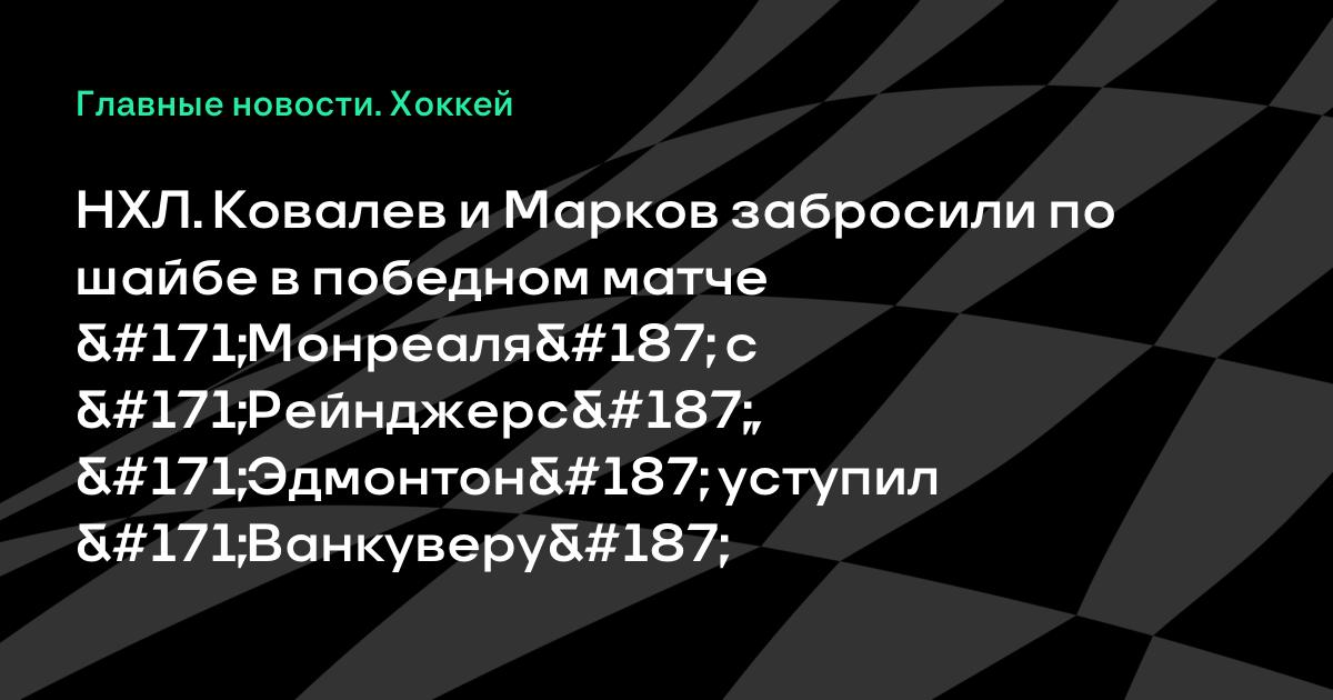 НХЛ. Ковалев и Марков забросили по шайбе в победном матче «Монреаля» с «Рейнджерс», «Эдмонтон» уступил «Ванкуверу»