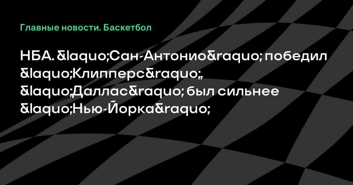 НБА. «Сан-Антонио» победил «Клипперс», «Даллас» был сильнее «Нью-Йорка»