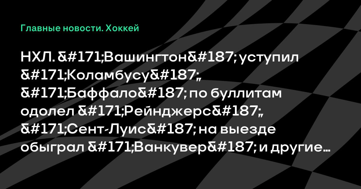 НХЛ. «Вашингтон» уступил «Коламбусу», «Баффало» по буллитам одолел «Рейнджерс», «Сент-Луис» на выезде обыграл «Ванкувер» и другие результаты