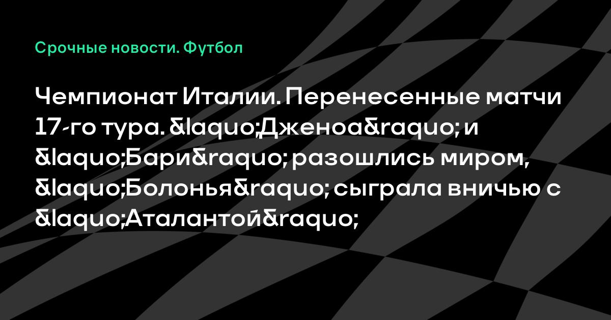 Чемпионат Италии. Перенесенные матчи 17-го тура. «Дженоа» и «Бари» разошлись миром, «Болонья» сыграла вничью с «Аталантой»