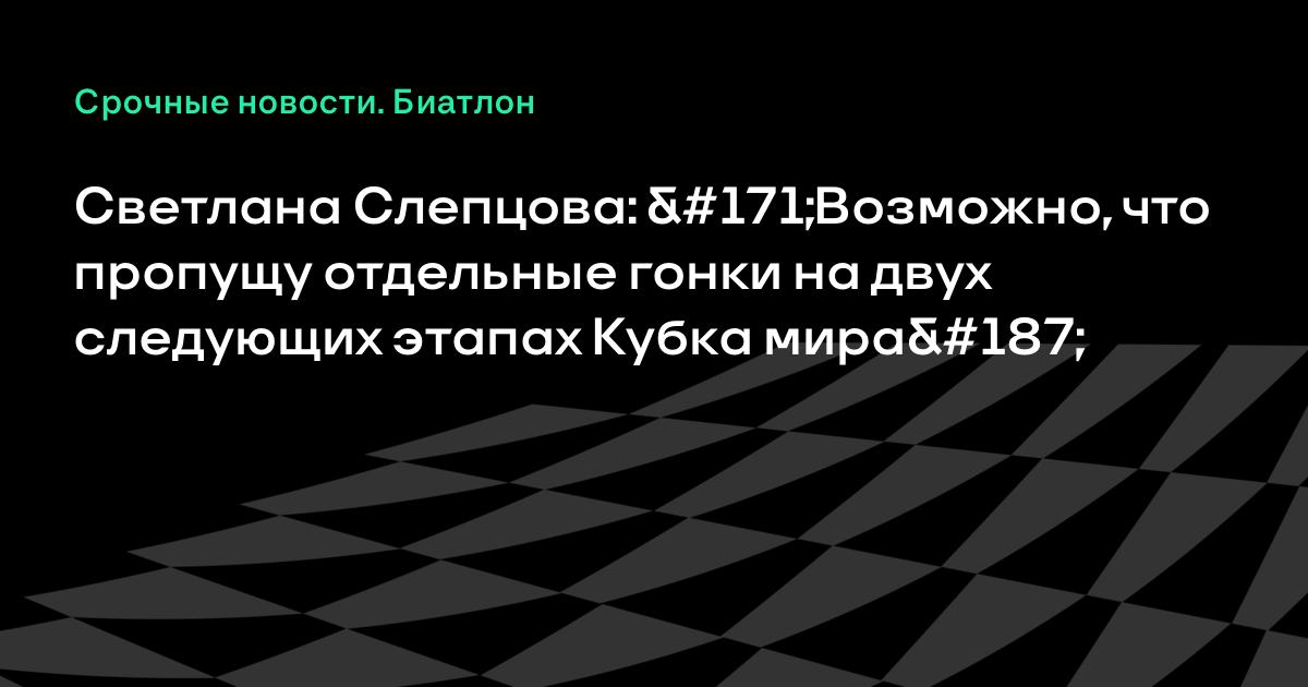 Перед вчерашним спринтом у меня было огромное желание сохранить желто-красную майку лидера и общего, и спринтерского зачетов Кубка мира. После финиша я долго размышляла и пришла к выводу, что готова пожертвовать ей, чтобы лучше подготовиться к февральскому чемпионату мира. Поэтому у меня есть планы пропускать отдельные гонки на следующих двух этапах Кубка мира. Но я пока не готова озвучить, в каких именно стартах не буду принимать участие. Думаю, такой отдых позволит мне в оптимальной форме подойти к чемпионату мира», рассказала Слепцова в интервью агентству «Весь спорт».