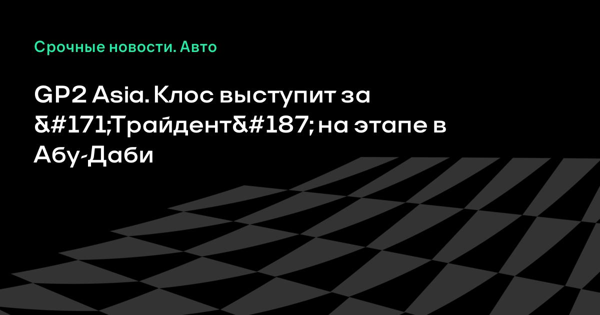 GP2 Asia. Клос выступит за «Трайдент» на этапе в Абу-Даби