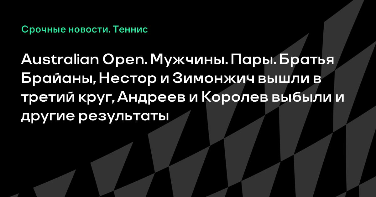 Australian Open. Мужчины. Пары. Братья Брайаны, Нестор и Зимонжич вышли в третий круг, Андреев и Королев выбыли и другие результаты