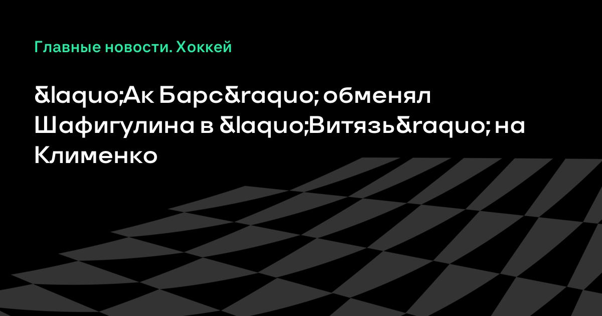 Казанский «Ак Барс» и чеховский «Витязь» обменялись нападающими. 25-летний Глеб Клименко, который является лучшим бомбардиром «Витязя» в этом сезоне, перешел в «Ак Барс», а 23-летний форвард казанцев Григорий Шафигулин перебрался в подмосковный клуб.