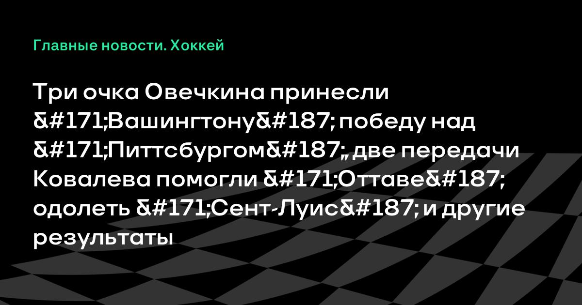 Три очка Овечкина принесли «Вашингтону» победу над «Питтсбургом», две передачи Ковалева помогли «Оттаве» одолеть «Сент-Луис» и другие результаты