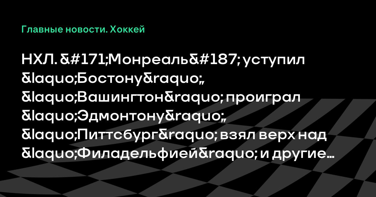 НХЛ. «Монреаль» уступил «Бостону», «Вашингтон» проиграл «Эдмонтону», «Питтсбург» взял верх над «Филадельфией» и другие результаты