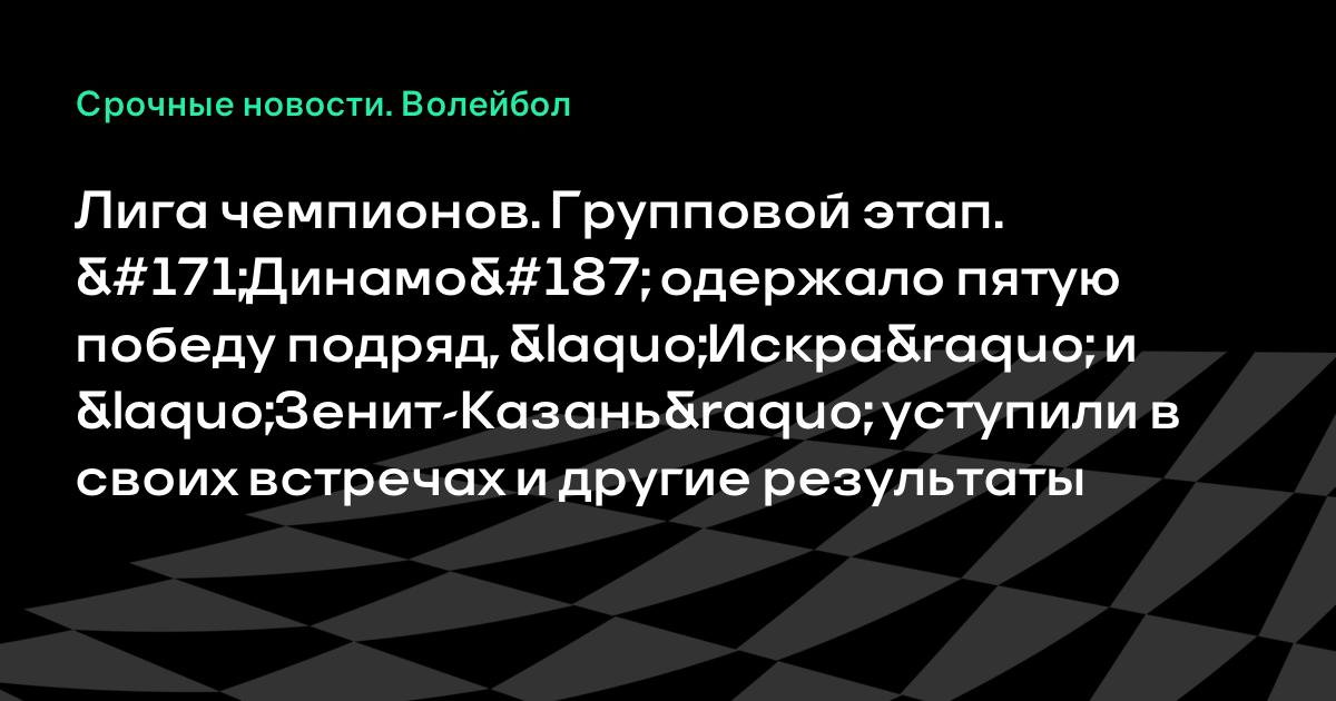 Лига чемпионов. Групповой этап. «Динамо» одержало пятую победу подряд, «Искра» и «Зенит-Казань» уступили в своих встречах и другие результаты