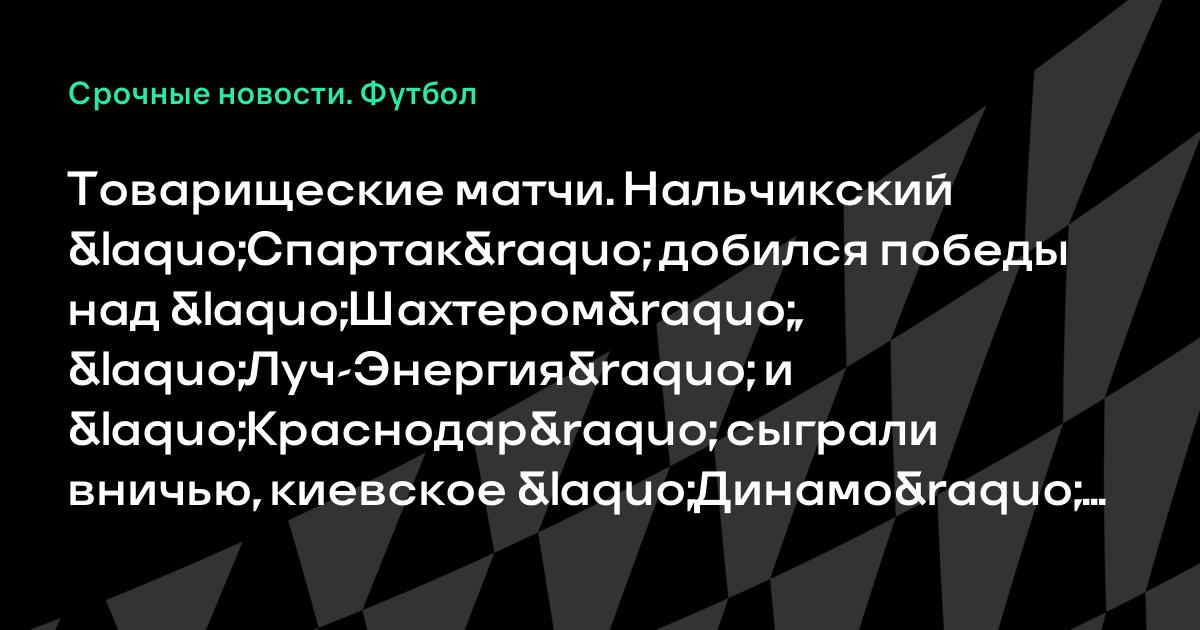 Товарищеские матчи. Нальчикский «Спартак» добился победы над «Шахтером», «Луч-Энергия» и «Краснодар» сыграли вничью, киевское «Динамо» обыграло клуб второго израильского дивизиона и другие результаты