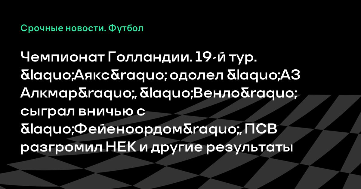 Чемпионат Голландии. 19-й тур. «Аякс» одолел «АЗ Алкмар», «Венло» сыграл вничью с «Фейеноордом», ПСВ разгромил НЕК и другие результаты