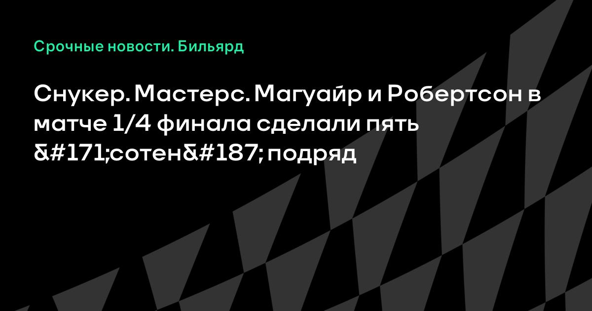 Снукер. Мастерс. Магуайр и Робертсон в матче 1/4 финала сделали пять «сотен» подряд