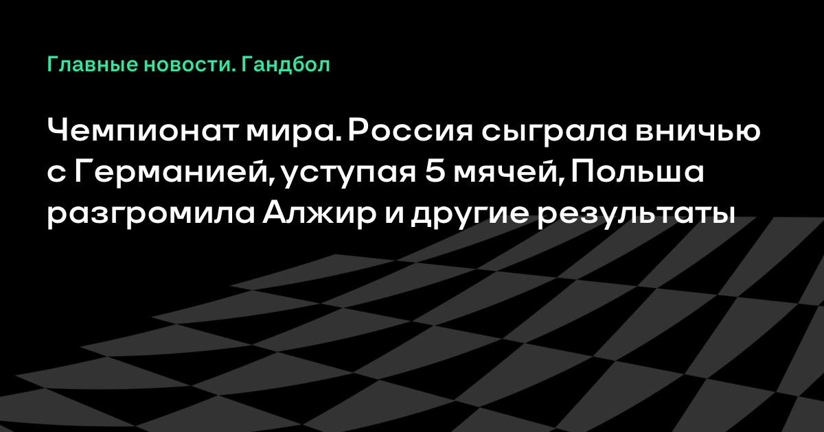 Чемпионат мира. Россия сыграла вничью с Германией, уступая 5 мячей, Польша разгромила Алжир и другие результаты