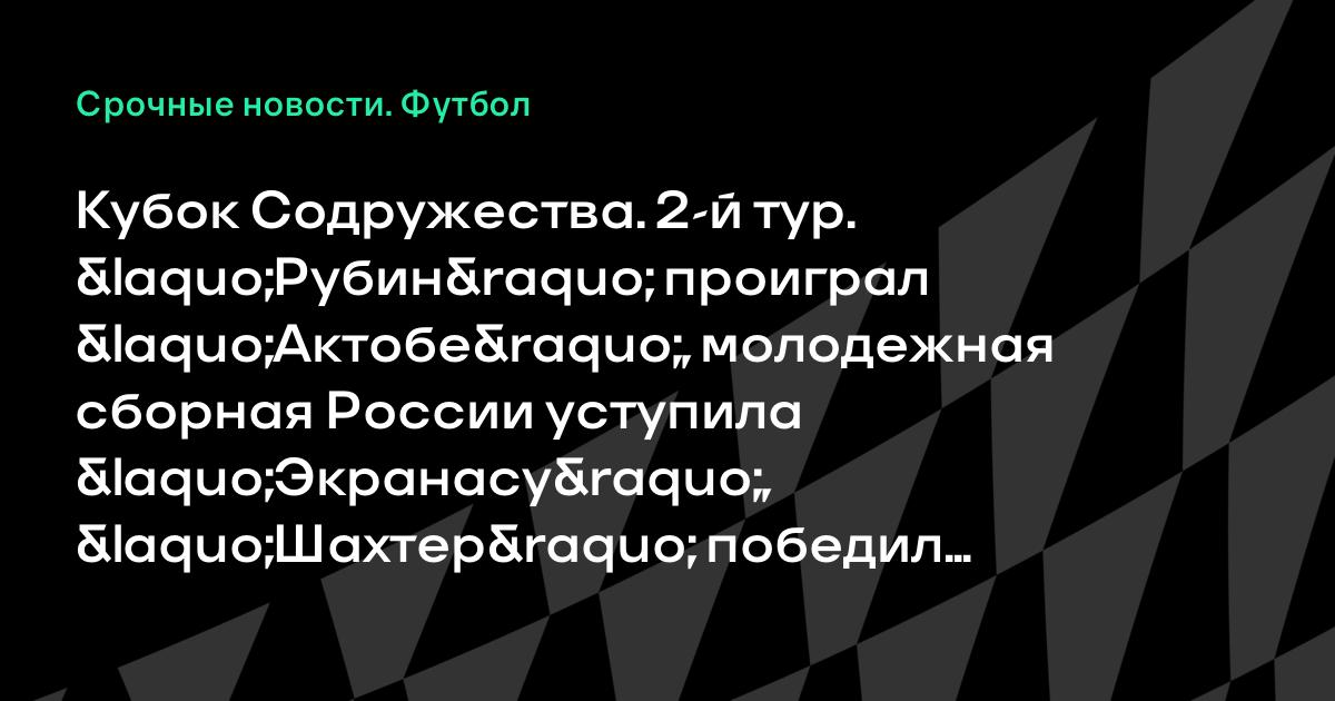 Кубок Содружества. 2-й тур. «Рубин» проиграл «Актобе», молодежная сборная России уступила «Экранасу», «Шахтер» победил «Левадию» и другие результаты