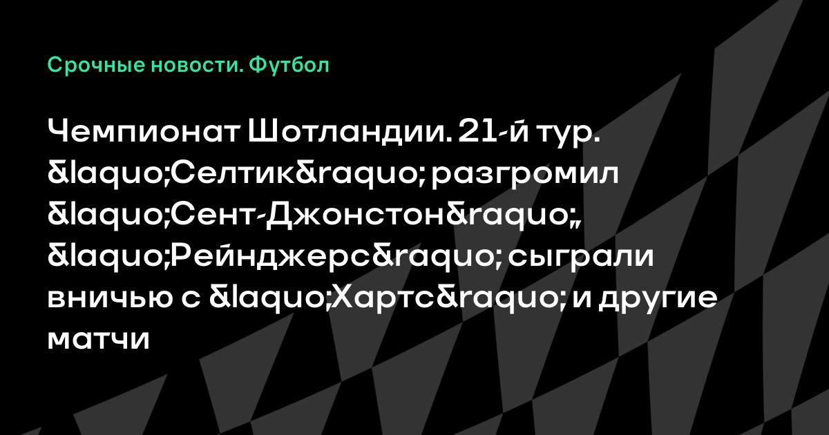 Чемпионат Шотландии. 21-й тур. «Селтик» разгромил «Сент-Джонстон», «Рейнджерс» сыграли вничью с «Хартс» и другие матчи